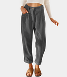 Damskie spodnie ze sztruksu o klasycznym wyglądzie i nowoczesnym kroju. Pasują do wielu stylizacji i sprawdzają się w różnych porach roku. Uniwersalny fason, który można łączyć z koszulą, swetrem czy marynarką.