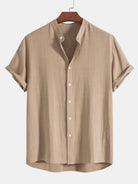 Męski zestaw dwuczęściowy letni składający się z koszuli i spodni. To model odpowiedni na cieplejsze dni, który można nosić jako komplet lub oddzielnie. Dzięki prostemu fasonowi sprawdza się w codziennych stylizacjach oraz podczas wyjazdów.